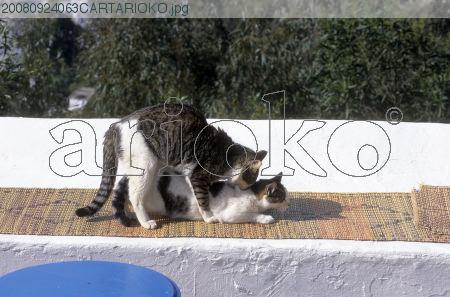 reproduction comportement félin terrasse brown tabby et blanc poil court